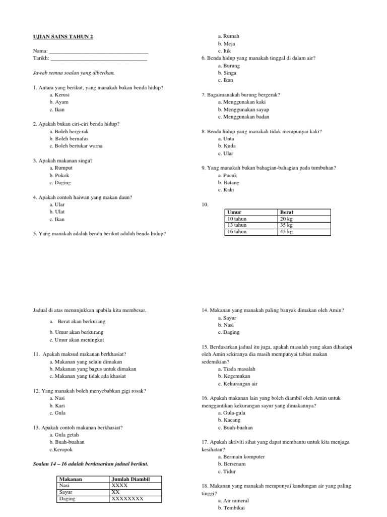 Norman hakim bin md mahadi no. Pilih deria yang paling tepat bagi gambar dan pernyataan di bawah. .ujian sekolah tingkat smp tahun pelajaran 2019/2020 yang dapat digunakan untuk pembelajaran di rumah atau bisa dimanfaatkan oleh bapak dan ibu guru yang mengampu mata pelajaran tersebut untuk pembuatan soal tahun berikutnya. Ujian pertengahan tahun sains tahun 1. Di sini para guru boleh dapatkan perkongsian kami bagi contoh soalan dst edisi 2017.